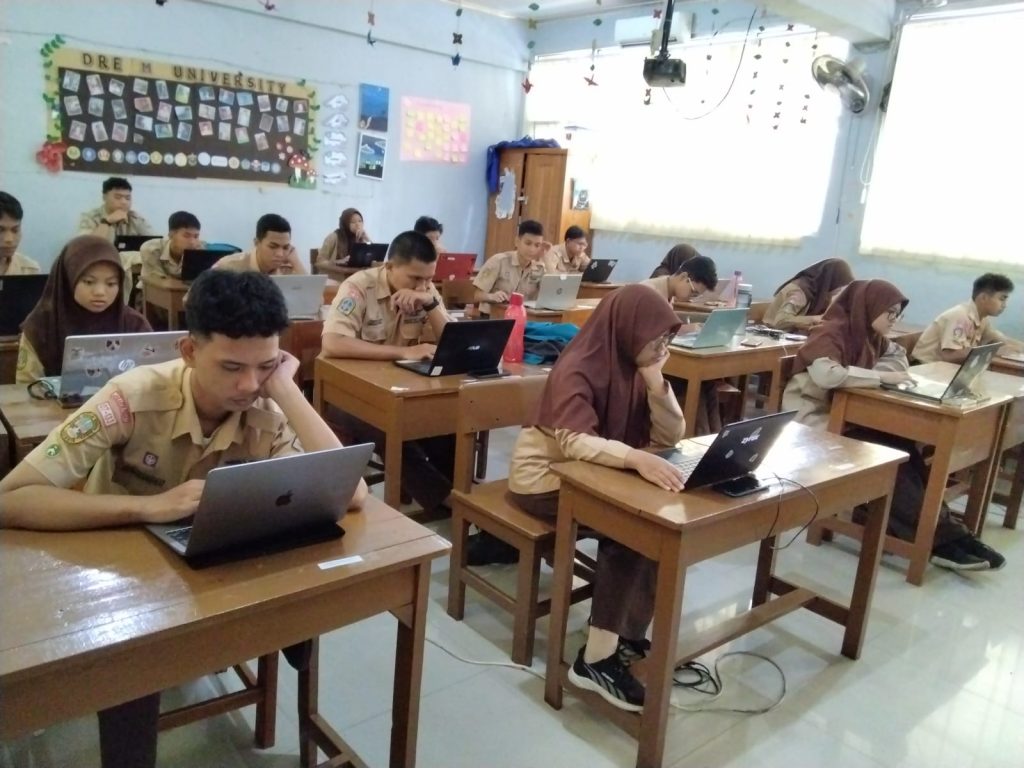Pelaksanaan ujian berlangsung di ruang kelas yang telah disiapkan dengan fasilitas pendukung seperti pengawasan dari guru. Selain itu, tim teknis turut disiagakan untuk memastikan tidak terjadi kendala teknis selama ujian berlangsung.