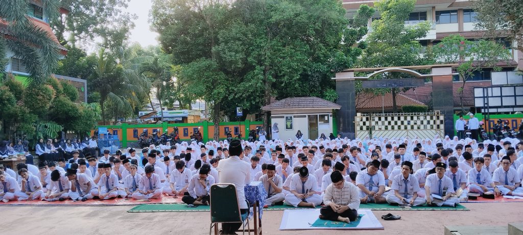 Selanjutnya, seluruh siswa melaksanakan shalat Dhuha secara munfarid, yang dipimpin oleh Bapak Helmy Wijaya, M.Pd.I. Kegiatan ini turut didampingi oleh Kepala MAN 3 Jakarta Pusat, Bapak Iik Zakki Mubarok, S.Kom., M.Pd., serta Bapak Fahmi Hidayatullael, M.Ag., bersama bapak dan ibu guru lainnya yang memastikan kegiatan berlangsung dengan tertib dan khidmat.