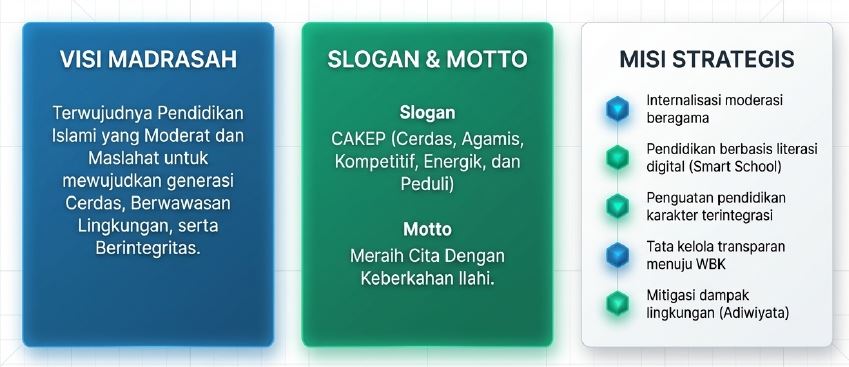 - Menciptakan lingkungan madrasah yang asri, sehat, dan berkelanjutan melalui program mitigasi dampak lingkungan dan pengelolaan sampah mandiri.